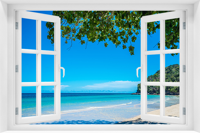 Fototapeta 3D Okno Natura Plaża Wakacje Palmy - p-56