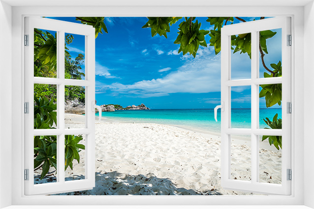 Fototapeta 3D Okno Natura Plaża Wakacje Palmy - p-61