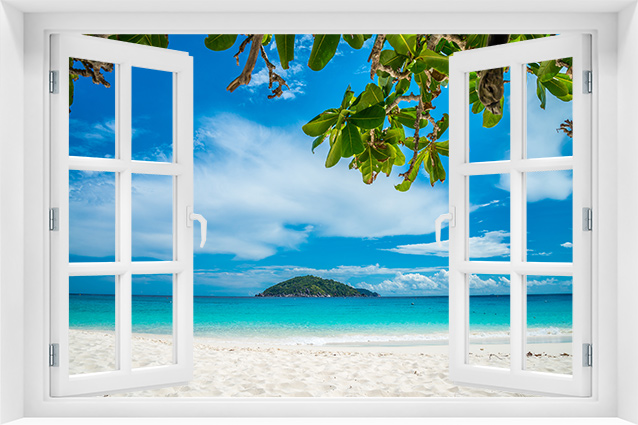 Fototapeta 3D Okno Natura Plaża Wakacje Palmy - p-62