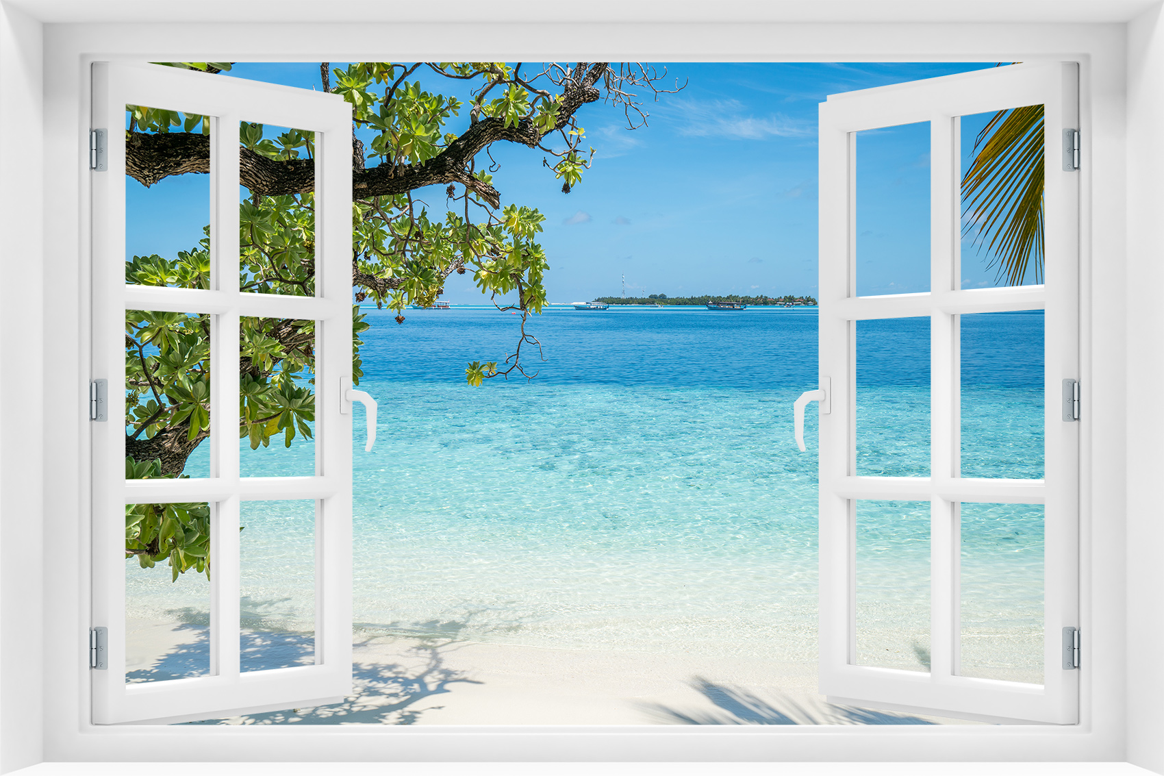 Fototapeta 3D Okno Natura Plaża Wakacje Palmy - p-67