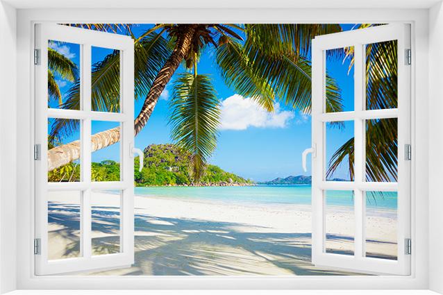 Fototapeta 3D Okno Natura Plaża Wakacje Palmy - p-75