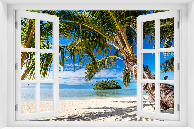 Fototapeta 3D Okno Natura Plaża Wakacje Palmy - p-78