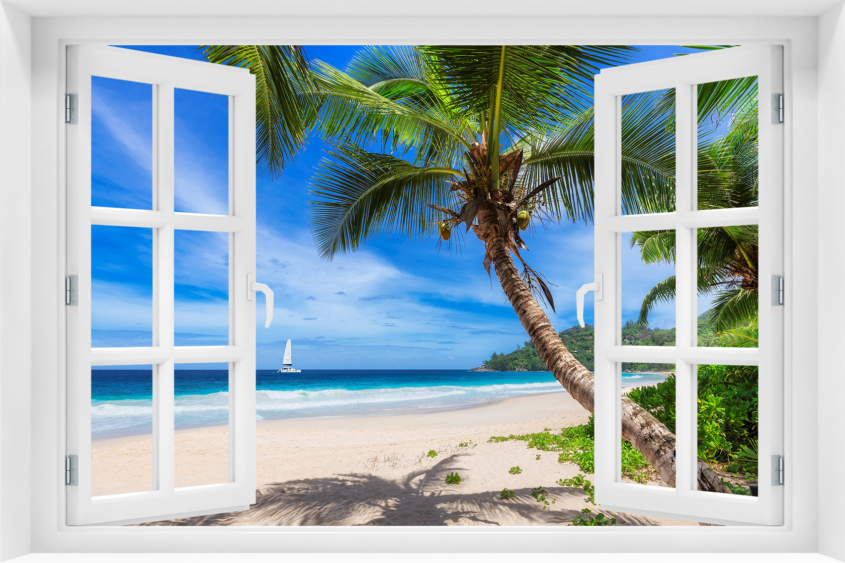 Fototapeta 3D Okno Natura Plaża Wakacje Palmy - p-79