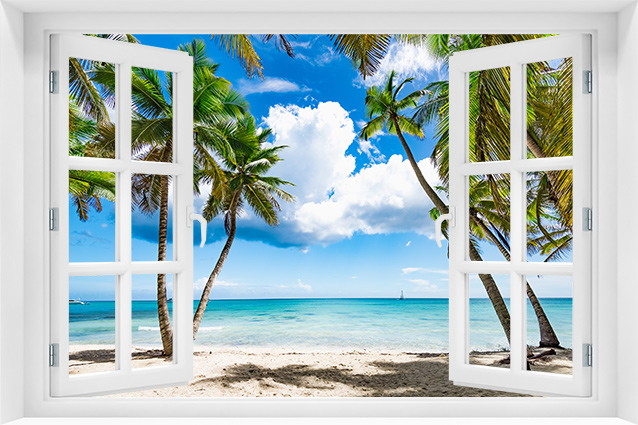 Fototapeta 3D Okno Natura Plaża Wakacje Palmy - p-81