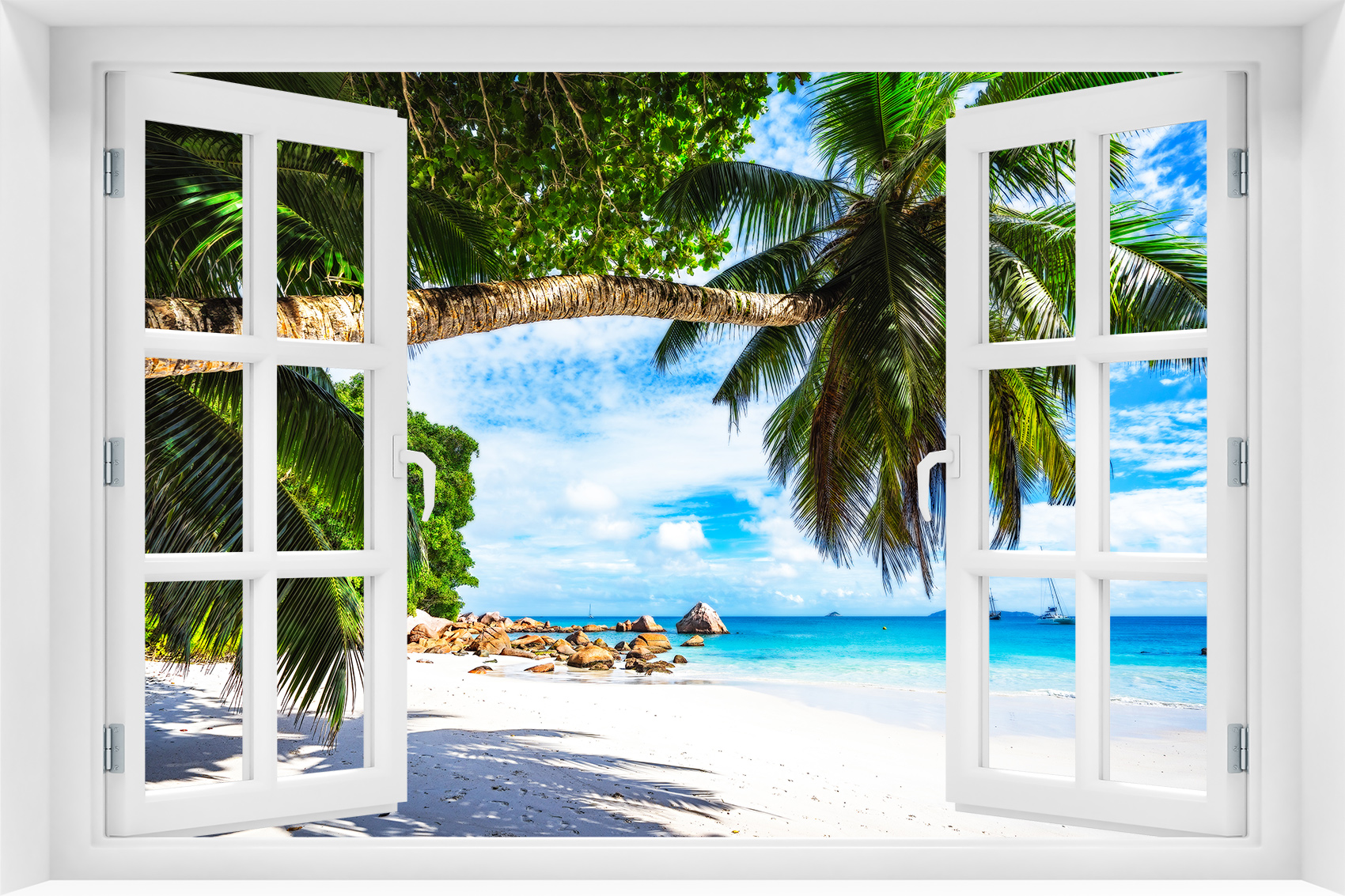 Fototapeta 3D Okno Natura Plaża Wakacje Palmy - p-82