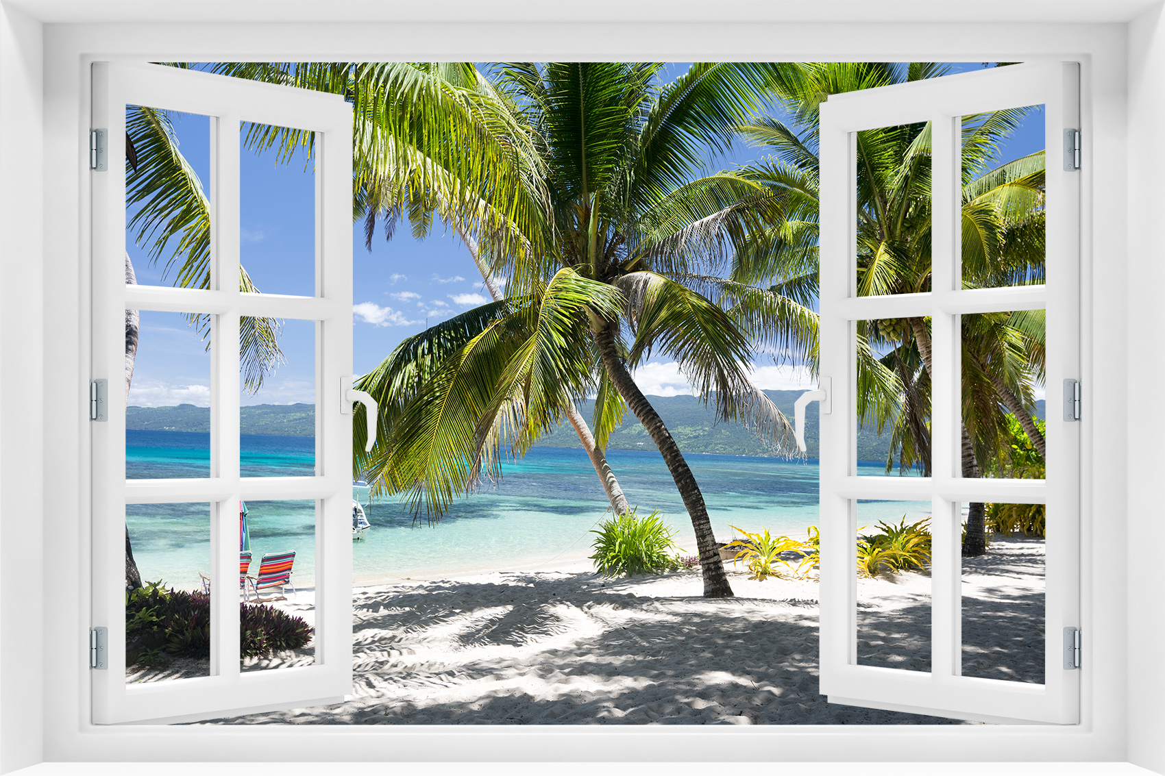 Fototapeta 3D Okno Natura Plaża Wakacje Palmy - p-84