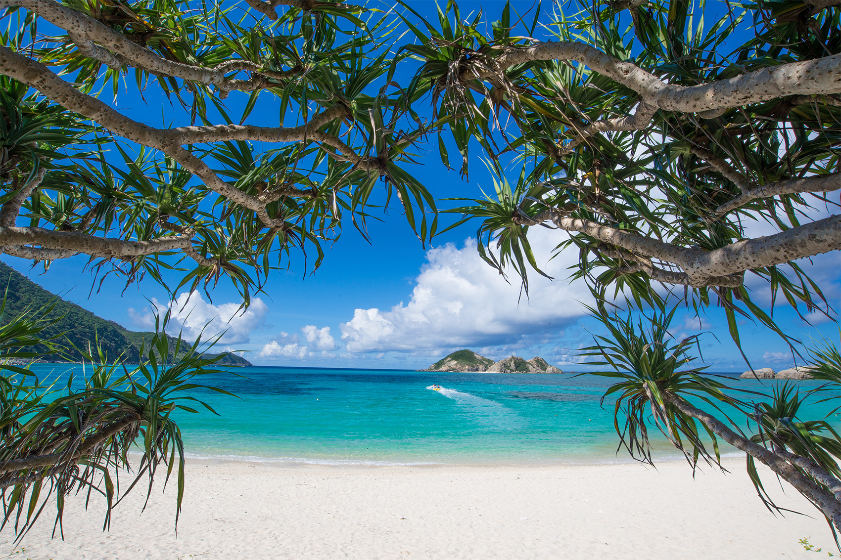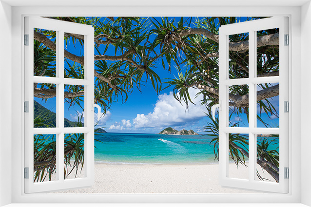 Fototapeta 3D Okno Natura Plaża Wakacje Palmy - p-86