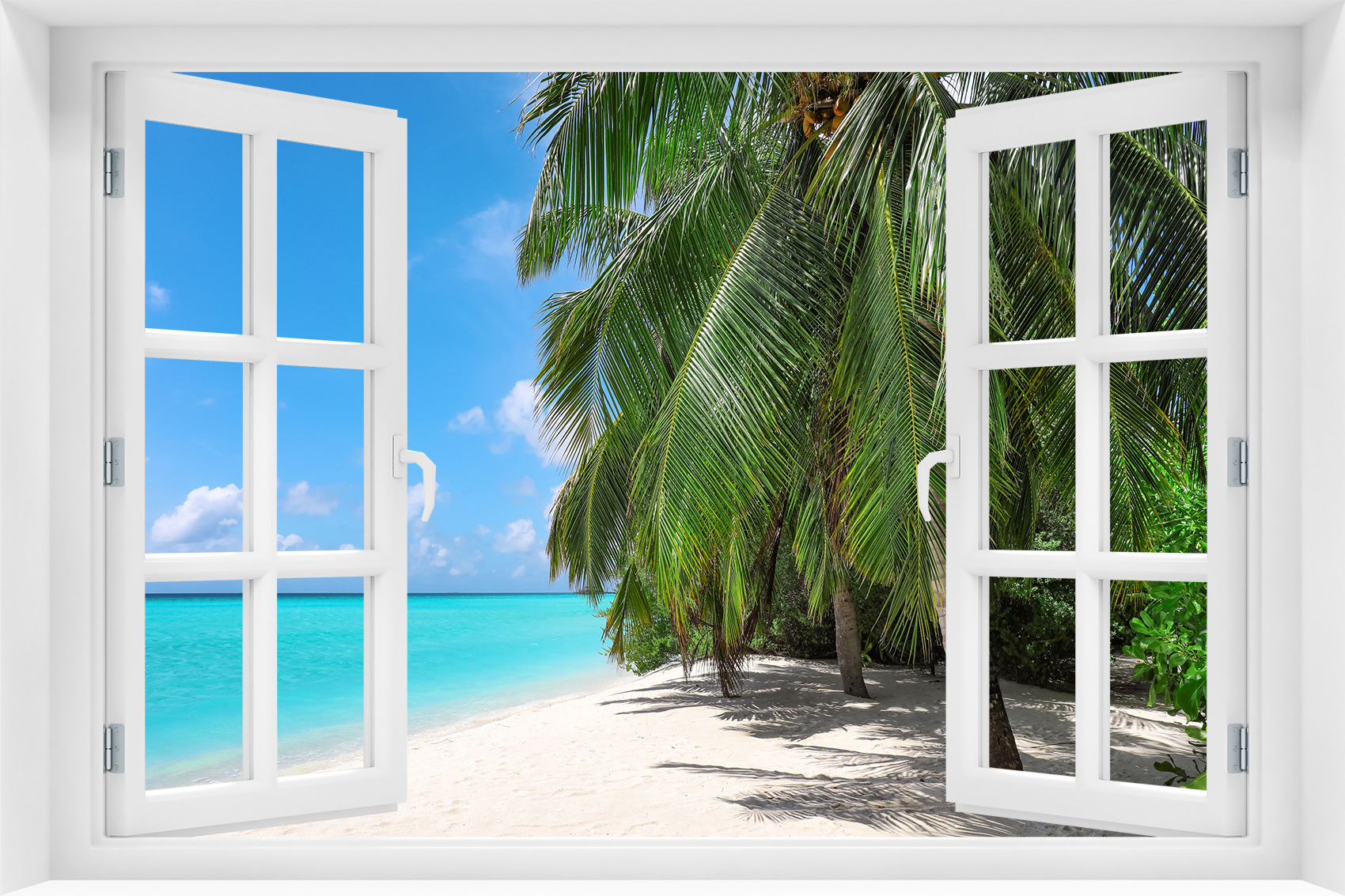 Fototapeta 3D Okno Natura Plaża Wakacje Palmy - p-88