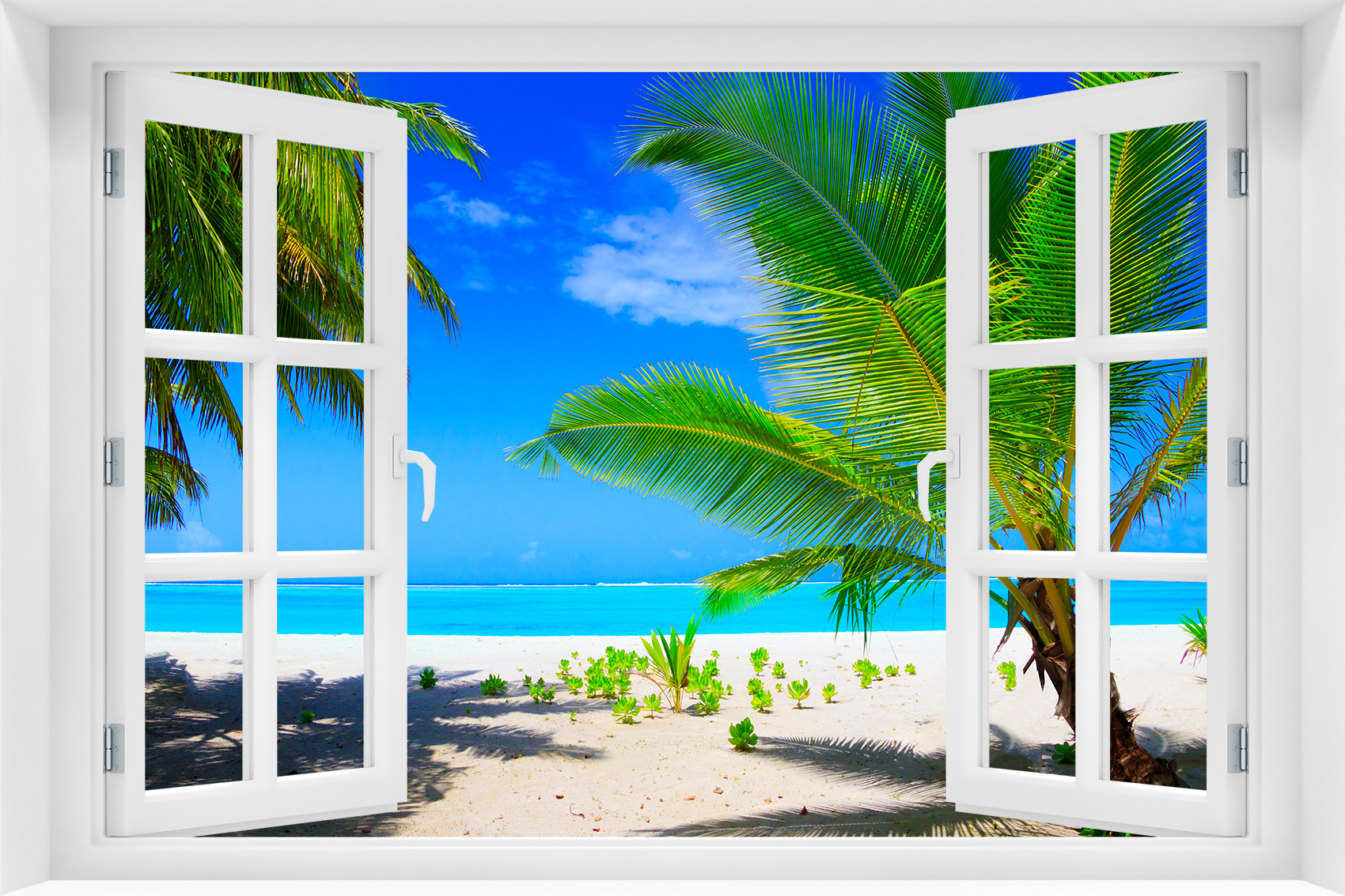 Fototapeta 3D Okno Natura Plaża Wakacje Palmy - p-89