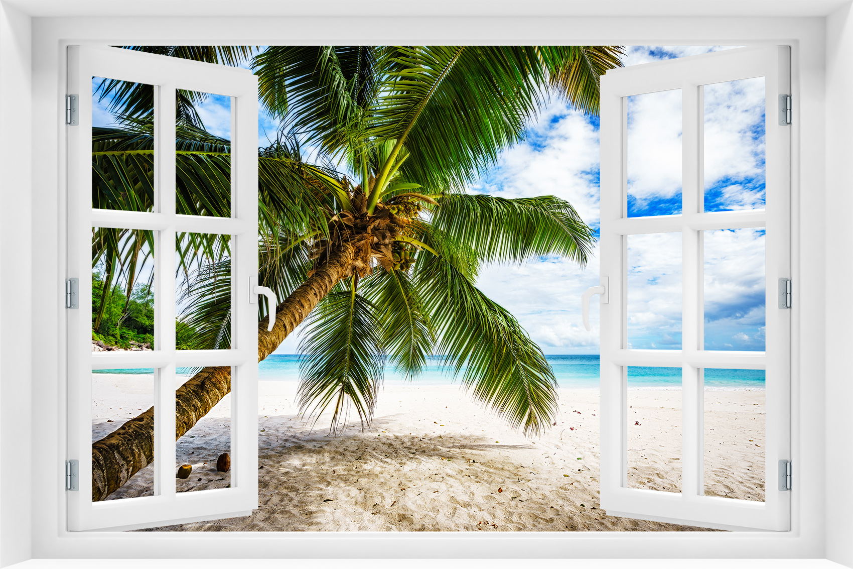 Fototapeta 3D Okno Natura Plaża Wakacje Palmy - p-92