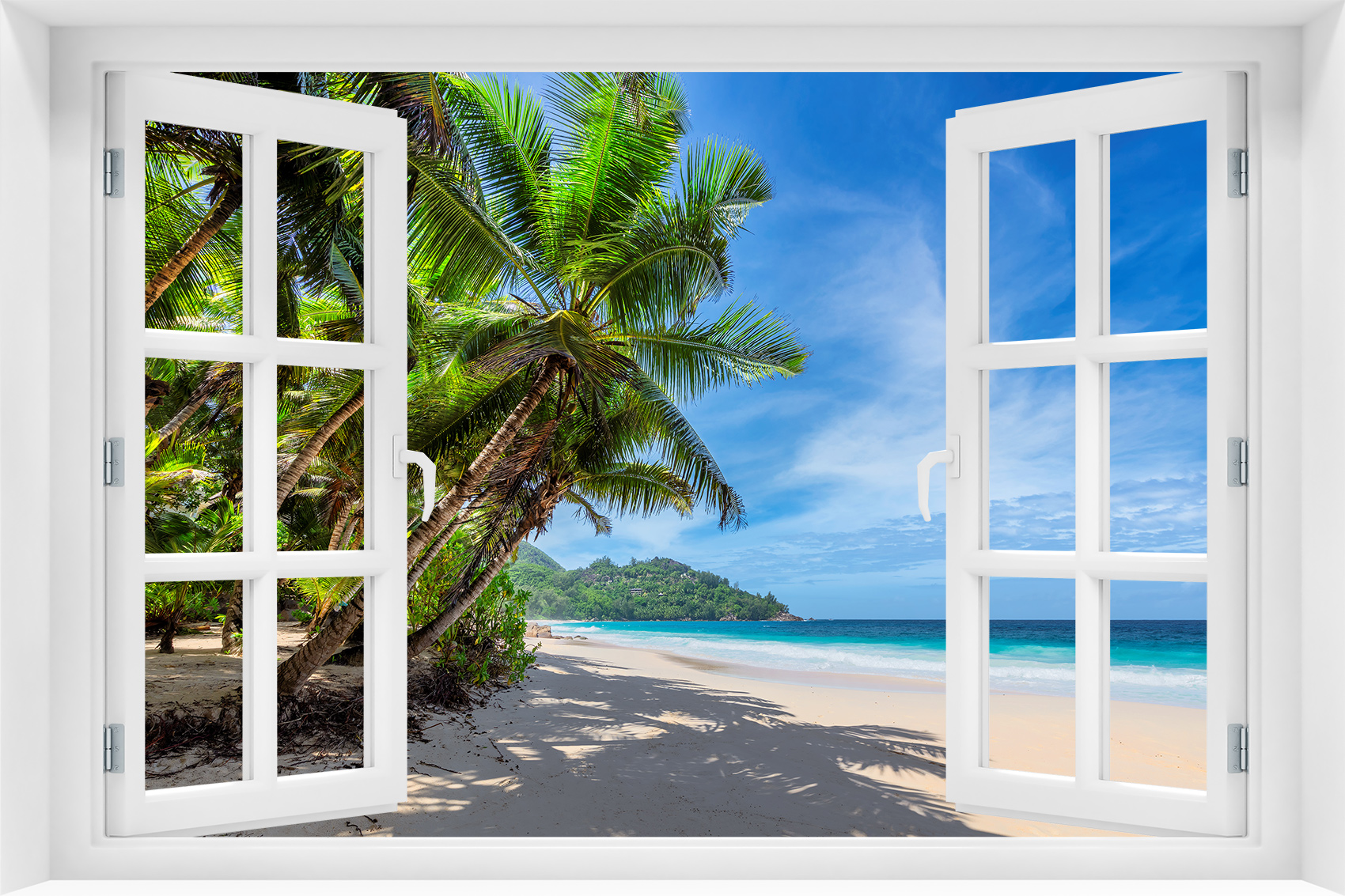 Fototapeta 3D Okno Natura Plaża Wakacje Palmy - p-93