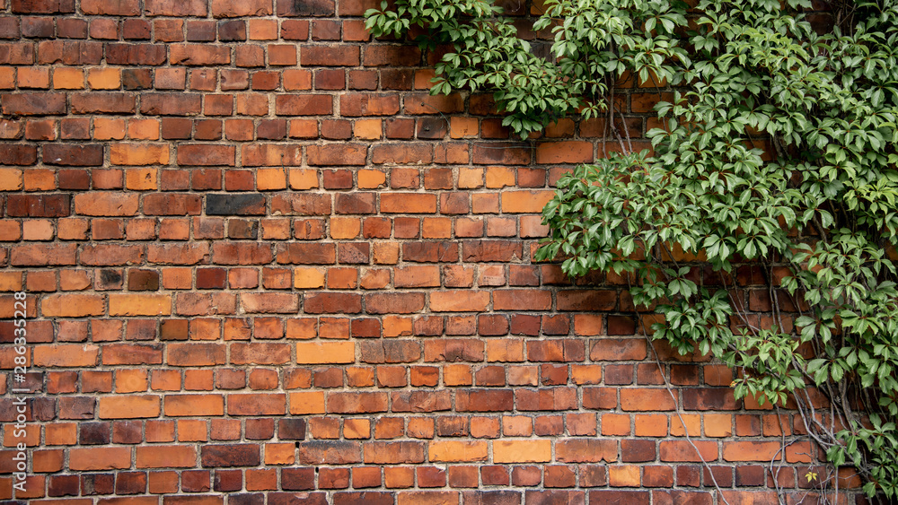 Ceglana ściana z roślinością - #5687