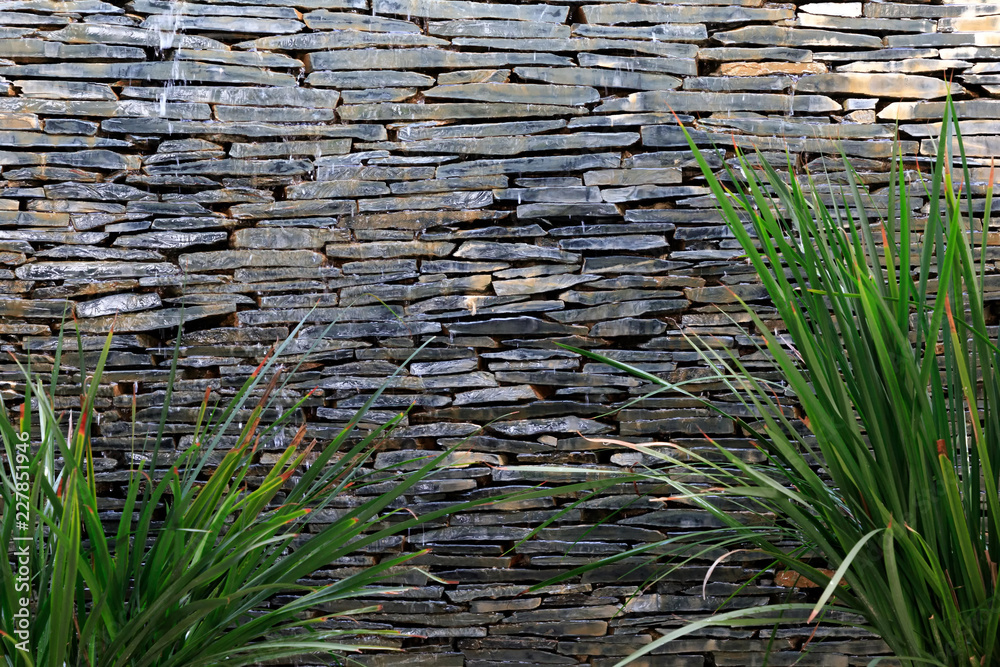 Kamienna ściana z roślinością - #5686