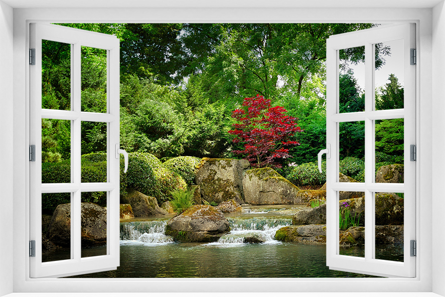 Fototapeta 3D Okno Krajobraz Drzewa Park - kr-205