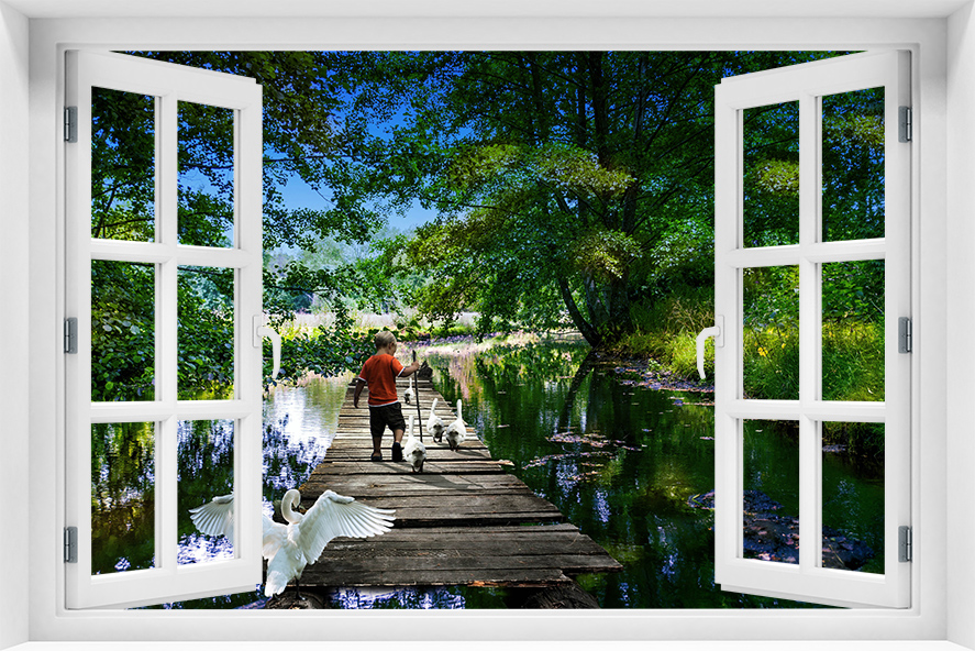 Fototapeta 3D Okno Krajobraz Drzewa Park - kr-210