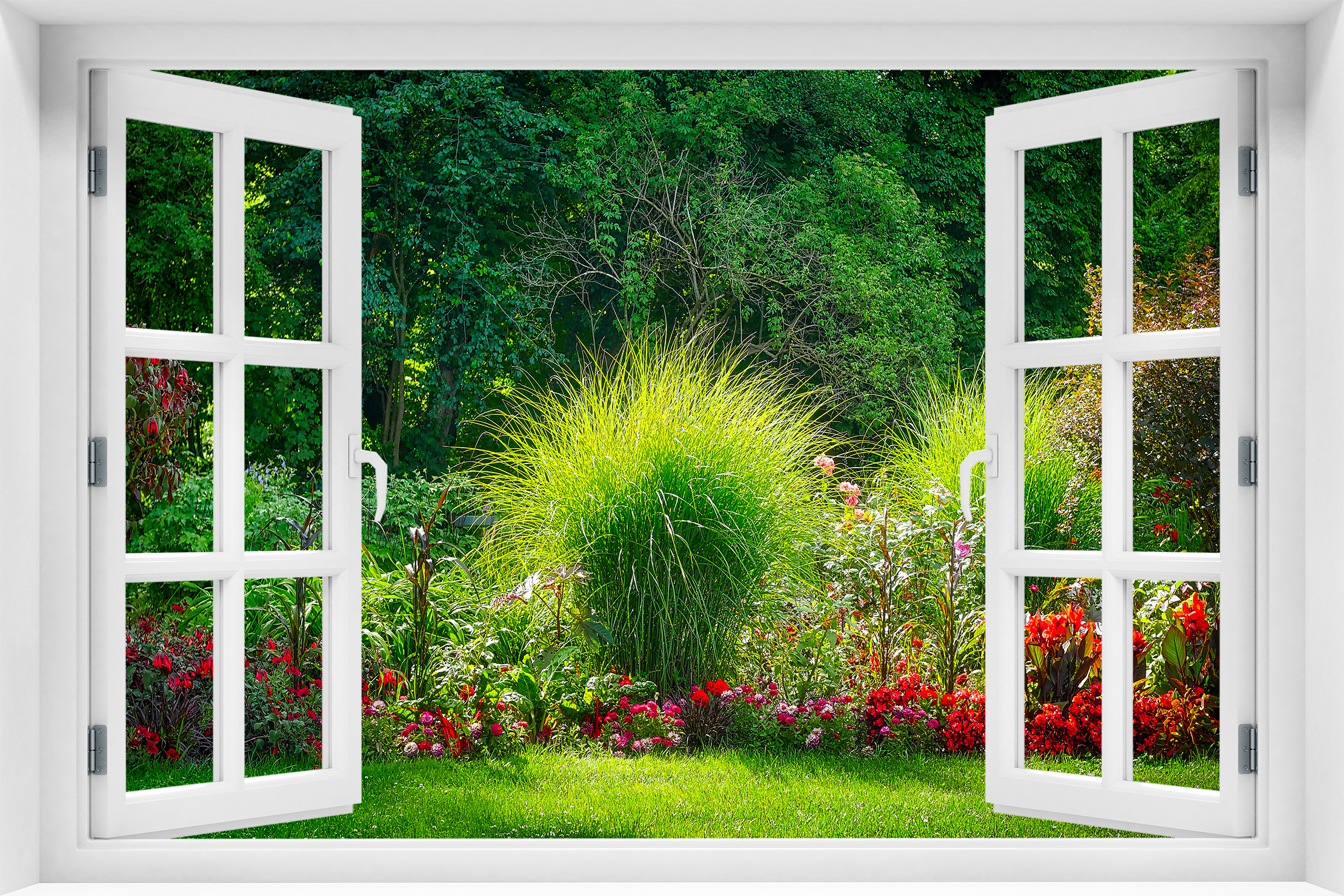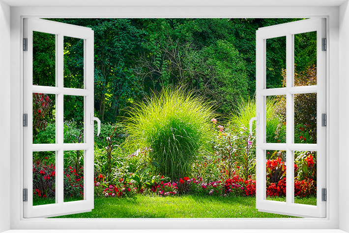 Fototapeta 3D Okno Park Kwiaty - kr-120