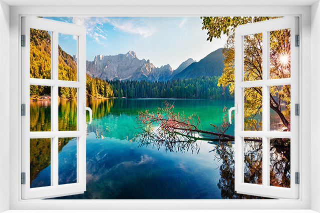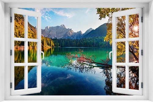 Fototapeta 3D Okno Krajobraz Jezioro Góry kr-290
