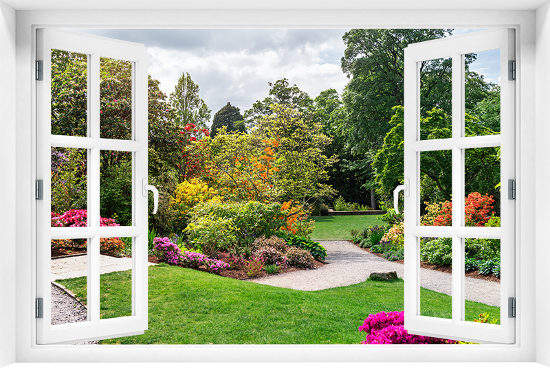 Fototapeta 3D Okno Krajobraz Kwiaty Drzewa - kr-366