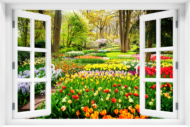 Fototapeta 3D Okno Krajobraz Kwiaty Drzewa Parki - kr-375