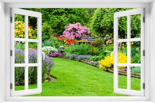 Fototapeta 3D Okno Krajobraz Ogród kr-333