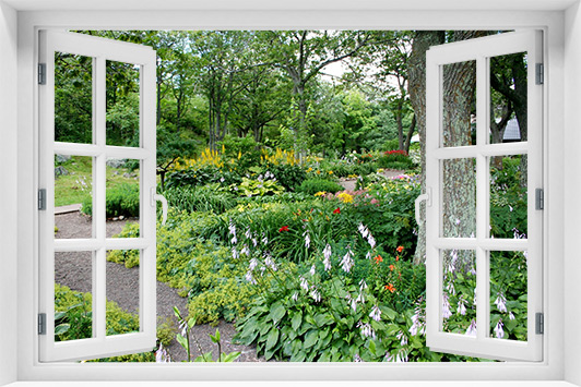 Fototapeta 3D Okno Ogród Rośliny Kwiaty kr-55