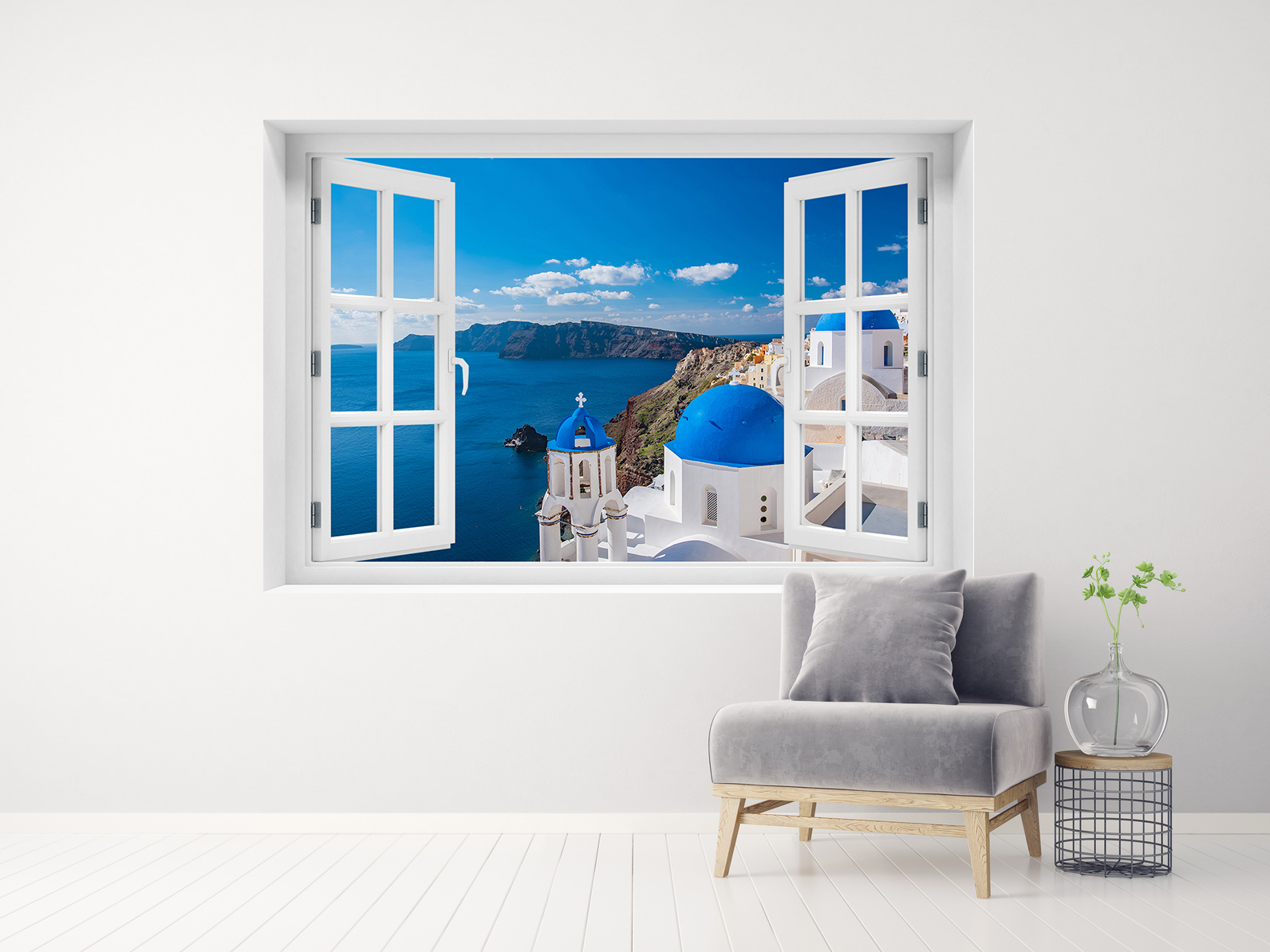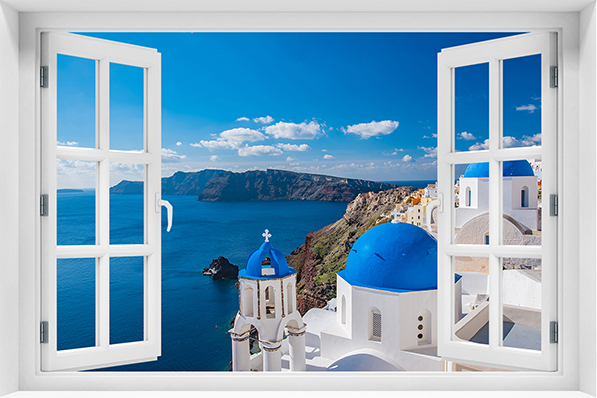Fototapeta 3D Okno - Morze Wakacje Grecja kr-19