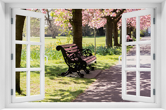 Fototapeta 3D Okno - Park Kwitnące Drzewa kr-22