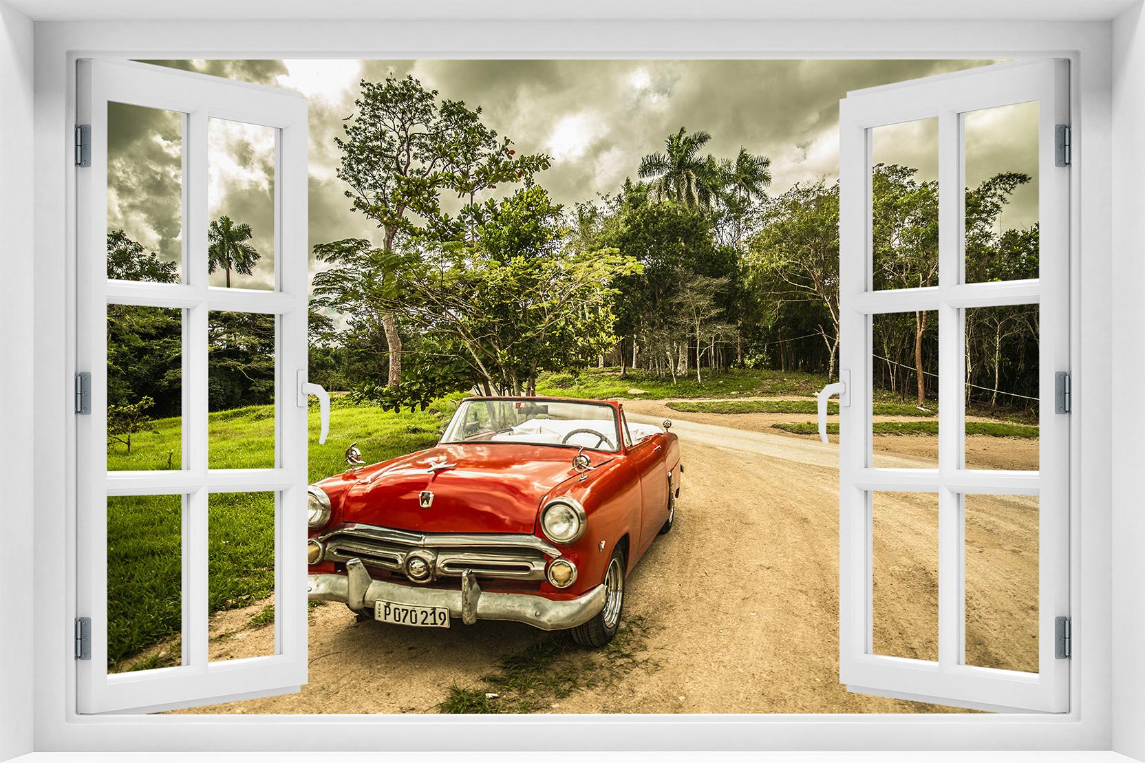 Fototapeta 3D Okno Cuba Auto Natura kr-31