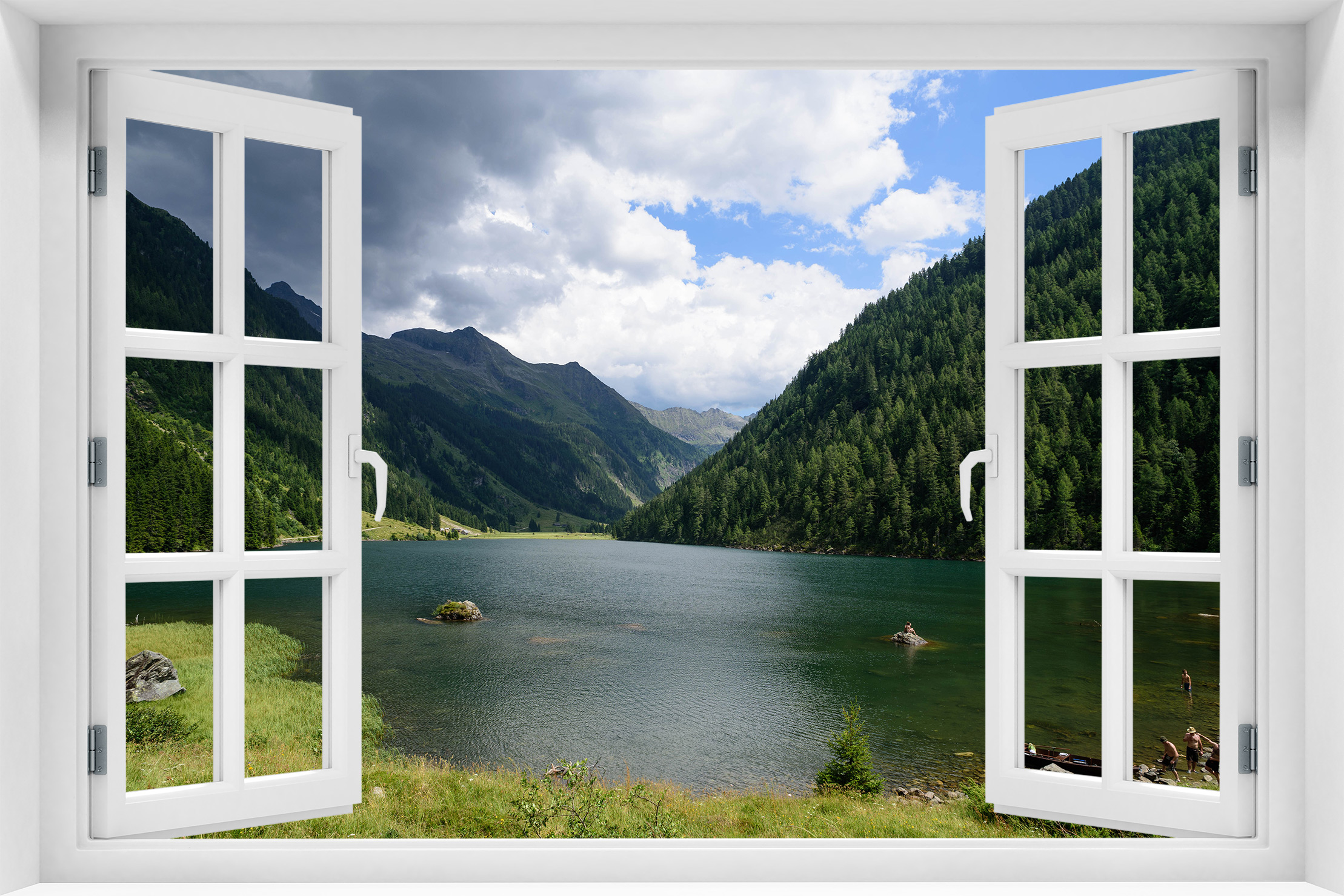 Fototapeta 3D Okno óry Jezioro Pejzaż kr-61