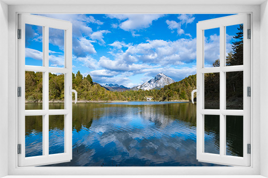 Fototapeta 3D Okno Jezioro Góry Drzewa kr-56