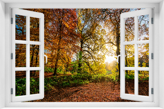 Fototapeta 3D Okno Krajobraz Drzewa Jesień kr-76