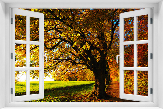 Fototapeta 3D Okno Natura Krajobraz Drzewa kr-52