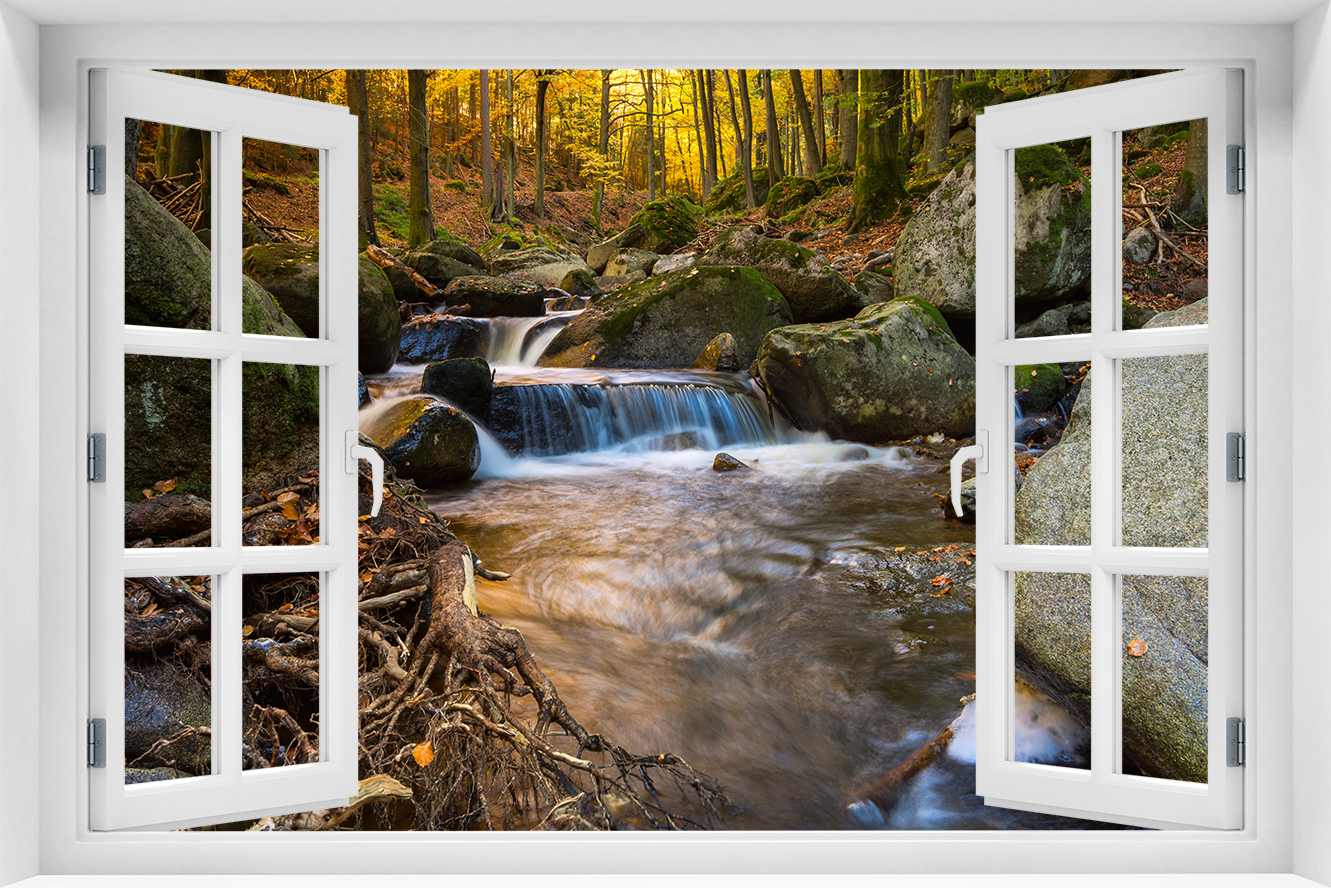 Fototapeta 3D Okno Strumień Drzewa Las kr-70