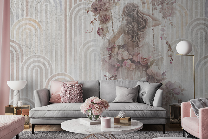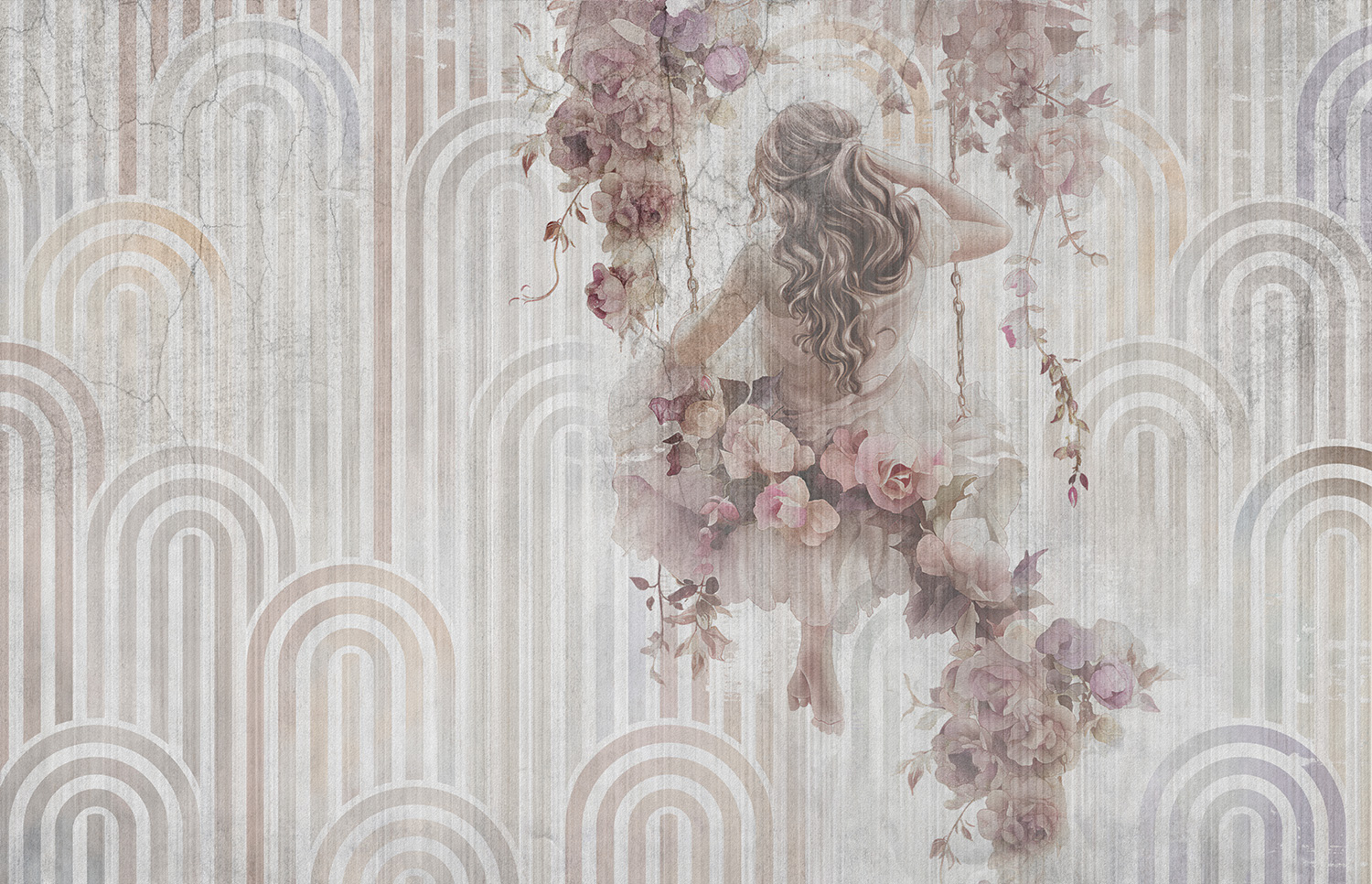 Tapeta kobieta na huśtawce beton boho #7823