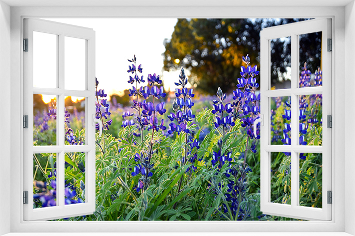 Fototapeta 3D Okno Park Kwiaty - kr-109