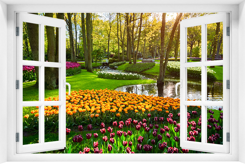 Fototapeta 3D Okno Krajobraz Kwiaty Drzewa Parki - kr-373
