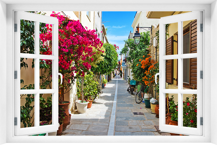 Fototapeta Okna 3D - Piękna uliczka w Grecji- #73425369