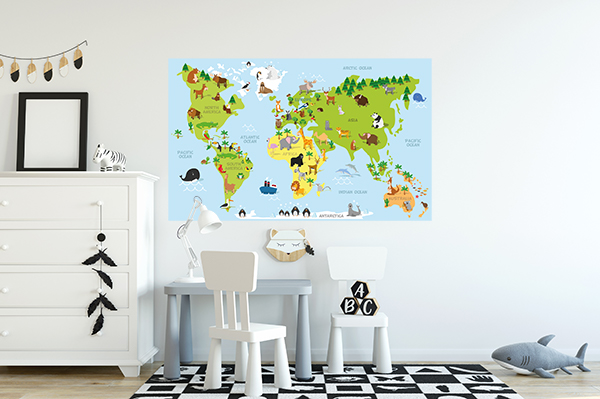 Mapa świata dla dzieci, zwierzątka - #99962679