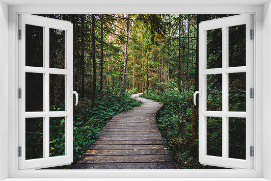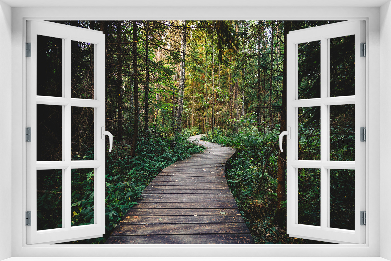 Fototapeta 3D Okno Ścieżka Drzewa Las kr-69