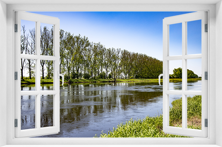 Fototapeta 3D Okno Krajobraz Rzeka Drzewa - kr-188