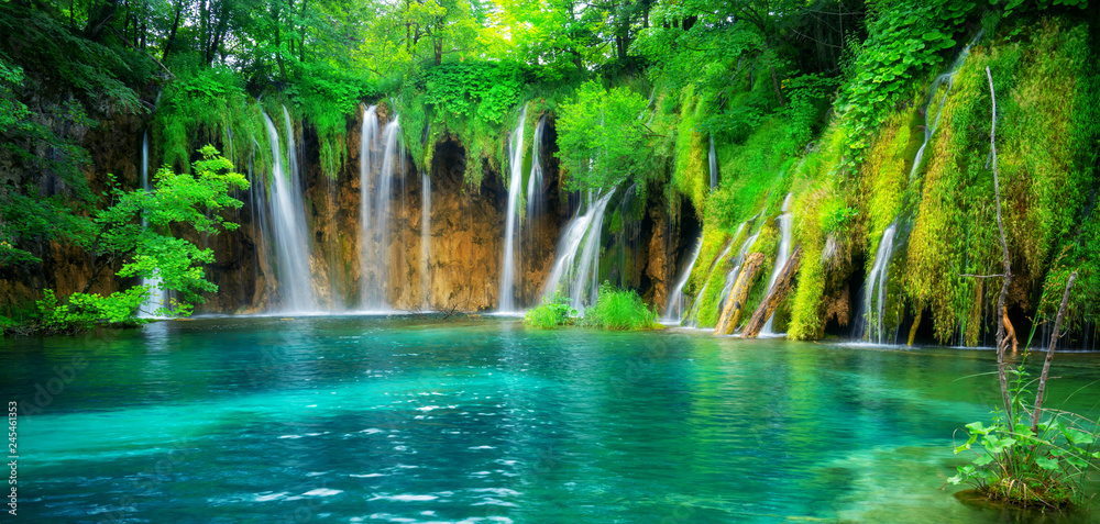 Egzotyczny krajobraz wodospadów i jezior Parku Narodowego Jezior Plitwickich - #5411