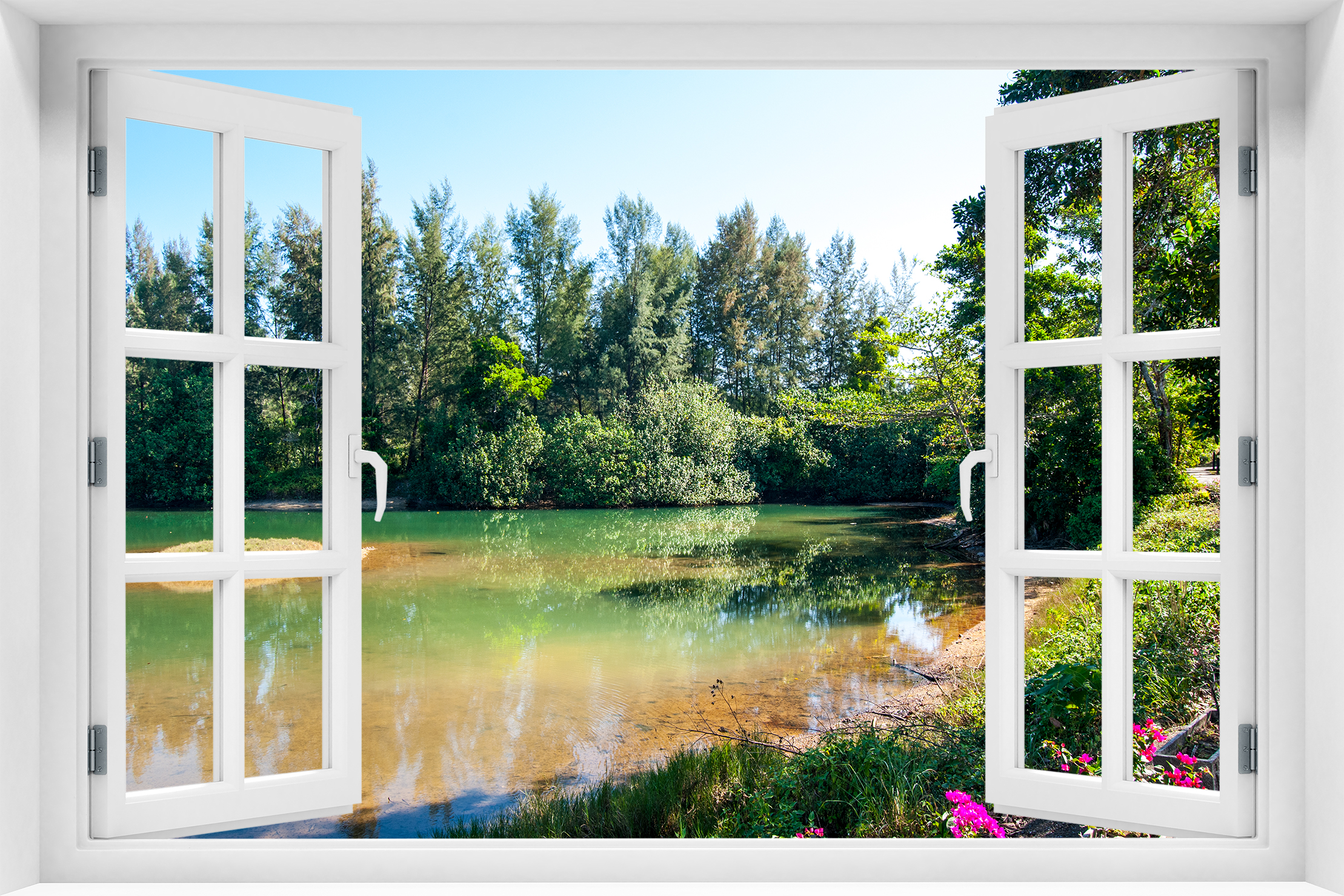 Fototapeta 3D Okno Krajobraz Tajlandia Drzewa Kwiaty t-40