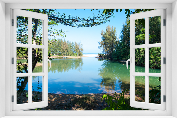 Fototapeta 3D Okno Krajobraz Tajlandia Drzewa Morze t-39