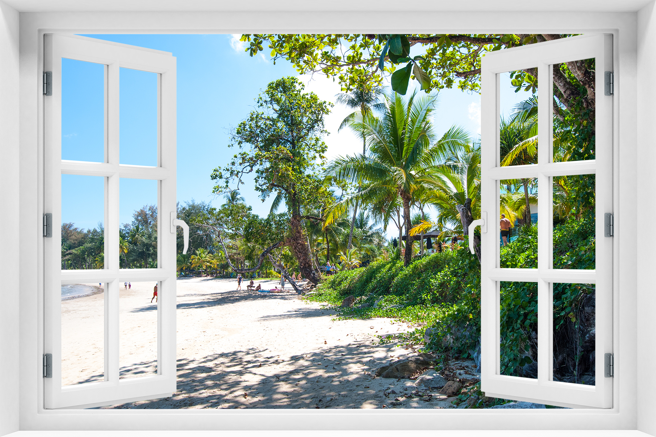 Fototapeta 3D Okno Krajobraz Tajlandia Morze Plaża Palmy t-54
