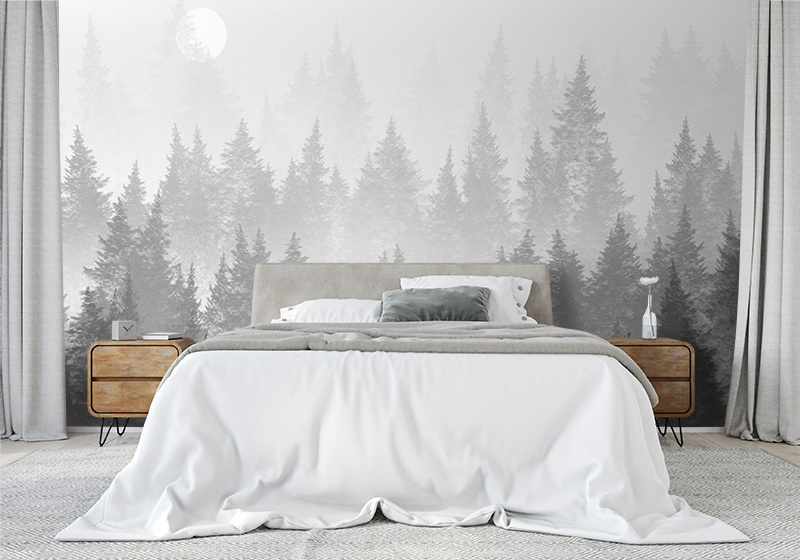 Fototapeta do salonu lub sypialni. Obraz idealnego poranka w lesie. Znakomita opcja na poprawę nastroju przy porannej kawie lub po przebudzeniu.