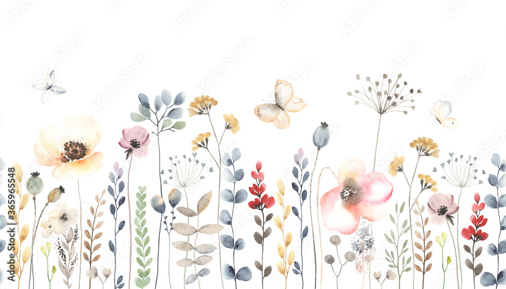 Grafika na ścianę - Akwarela liście i kwiaty - #5997