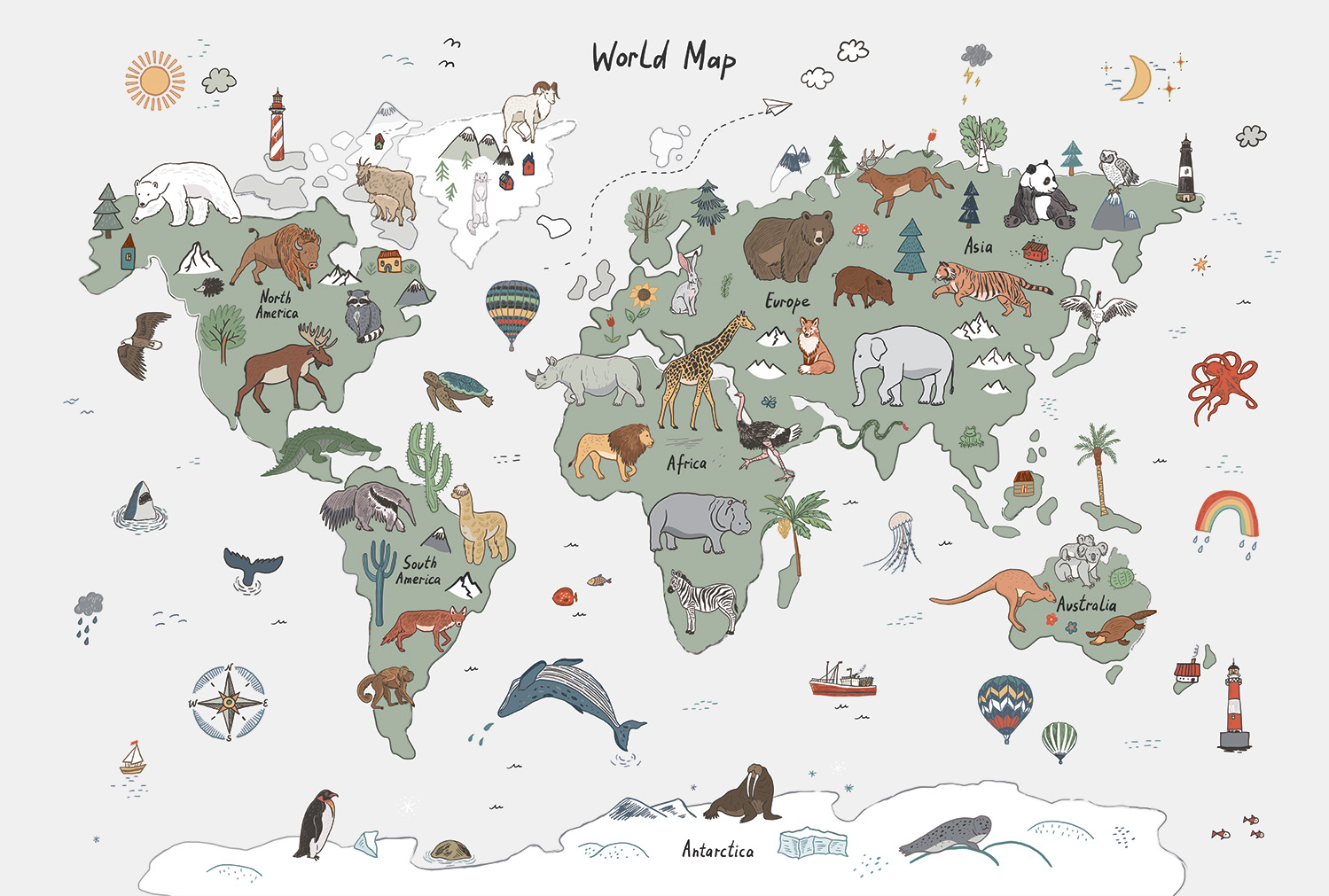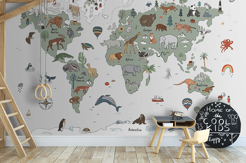 Tapeta mapa świata zwierzątka #7719