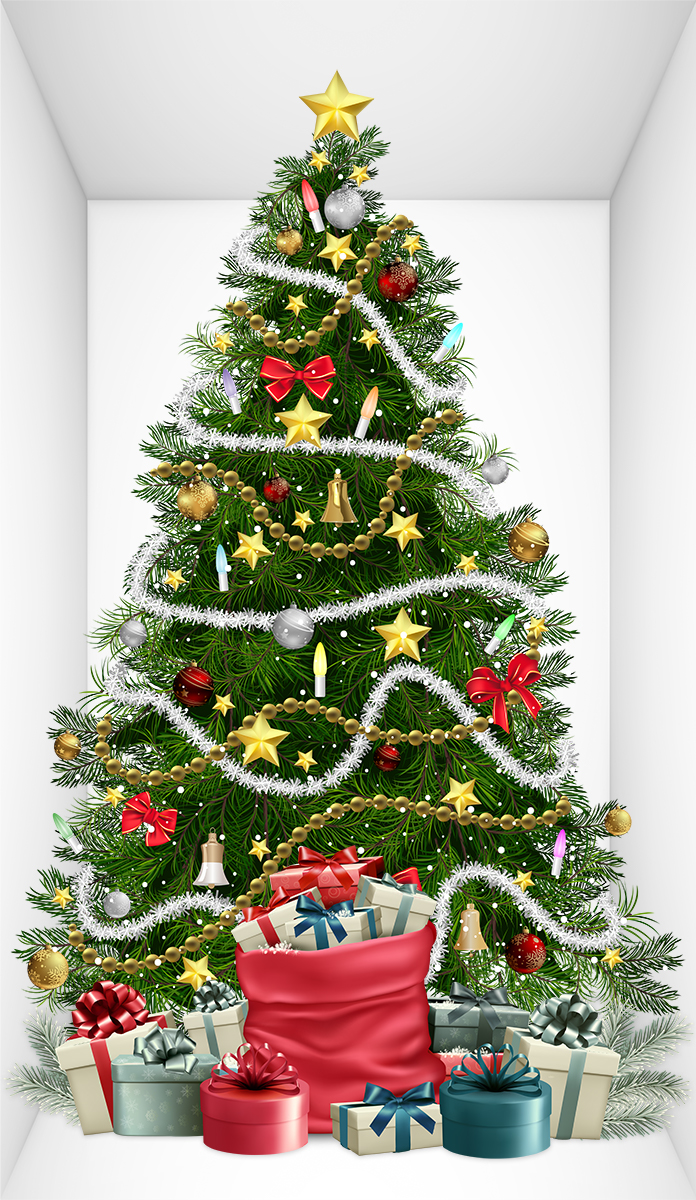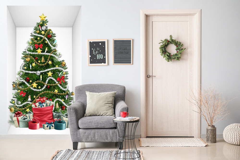 Duża naklejka efekt 3D, Choinka i prezenty we wnęce - choinka-1