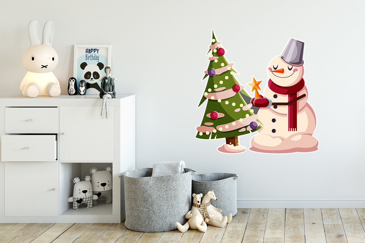 Naklejka Świąteczna - Bałwan z choinką