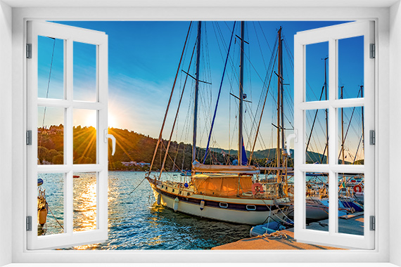 Fototapeta 3D Okno Krajobraz Morze Zachód Słońca - kr-471